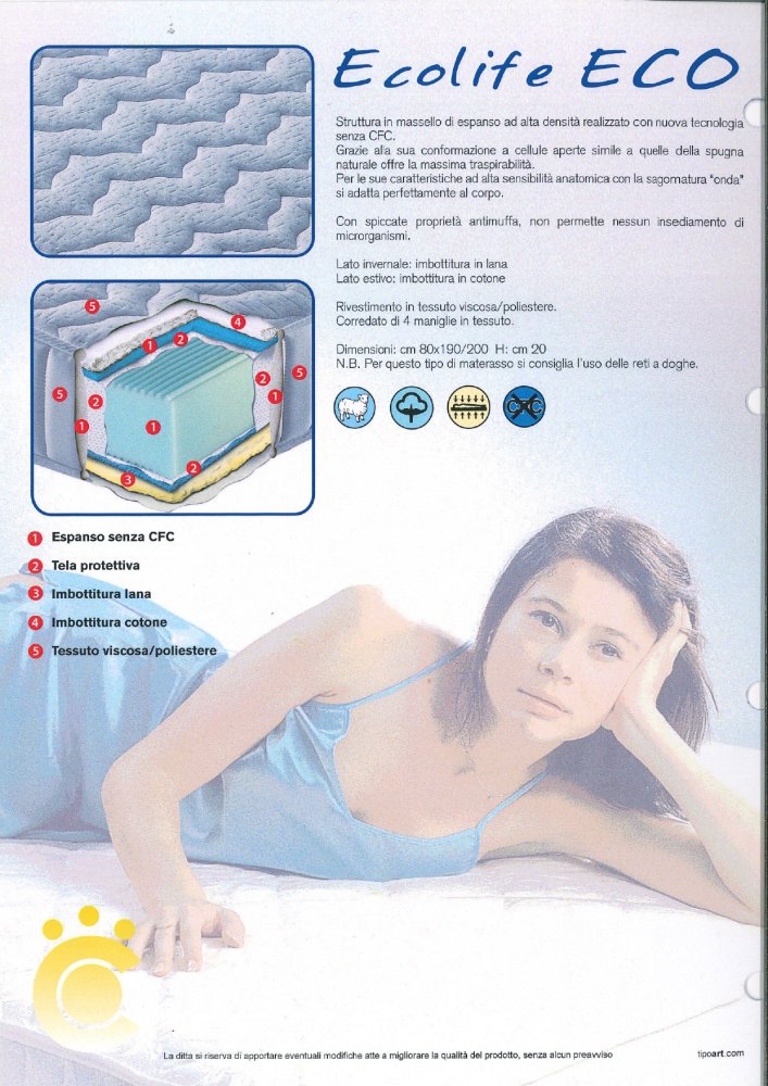 The Ecolife eco mattress has a structure in solid high density foam made with new technology without CFC.