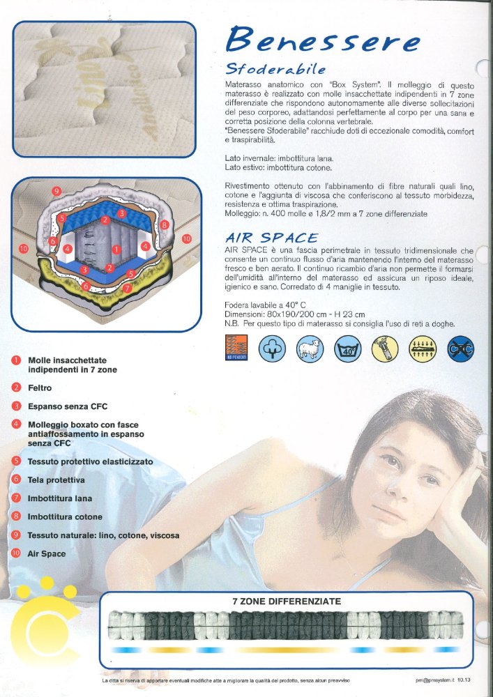 Springing: n. 400 springs with a diameter of 1.8 / 2 mm with 7 differentiated zones