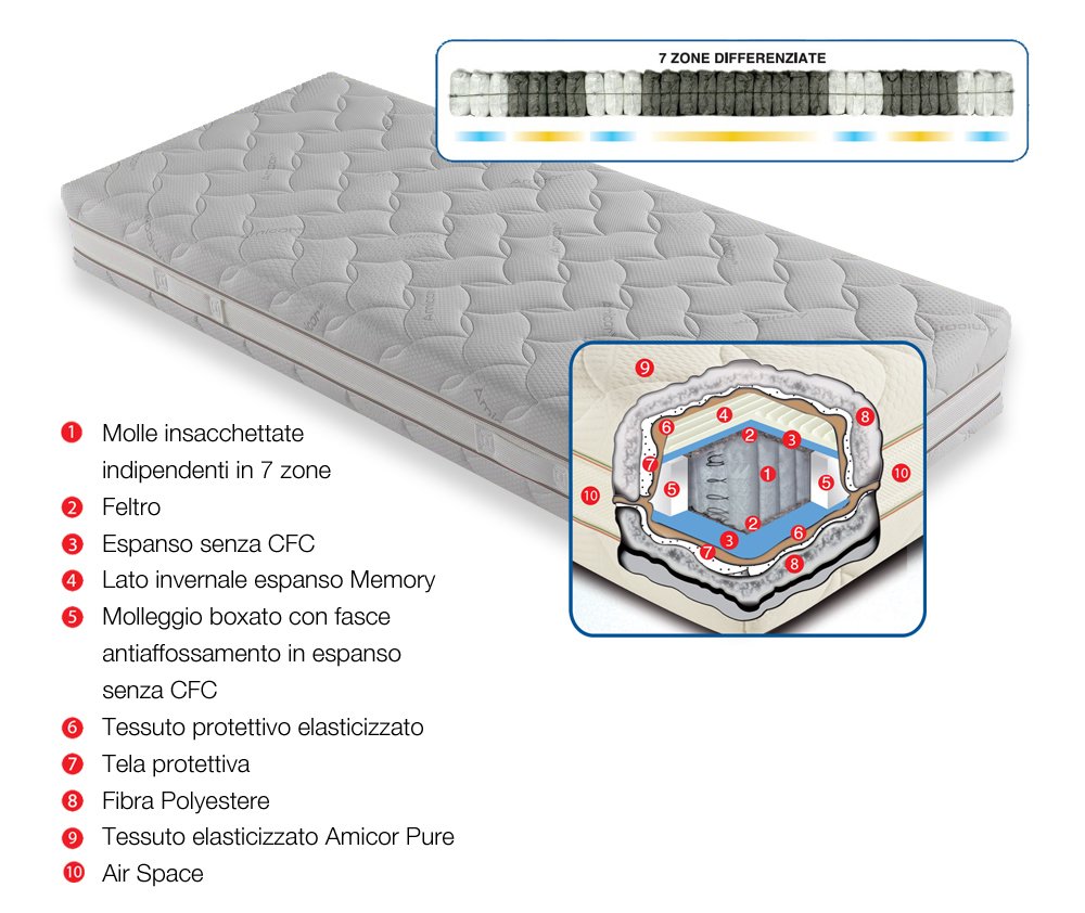 Il risultato? La postura resta corretta, senza che il corpo “affondi” o si creino fastidiose pressioni in altri punti. Anche in questo caso, la struttura a molle garantisce un’ottima traspirabilità, ideale per chi tende a soffrire il caldo durante il sonno.