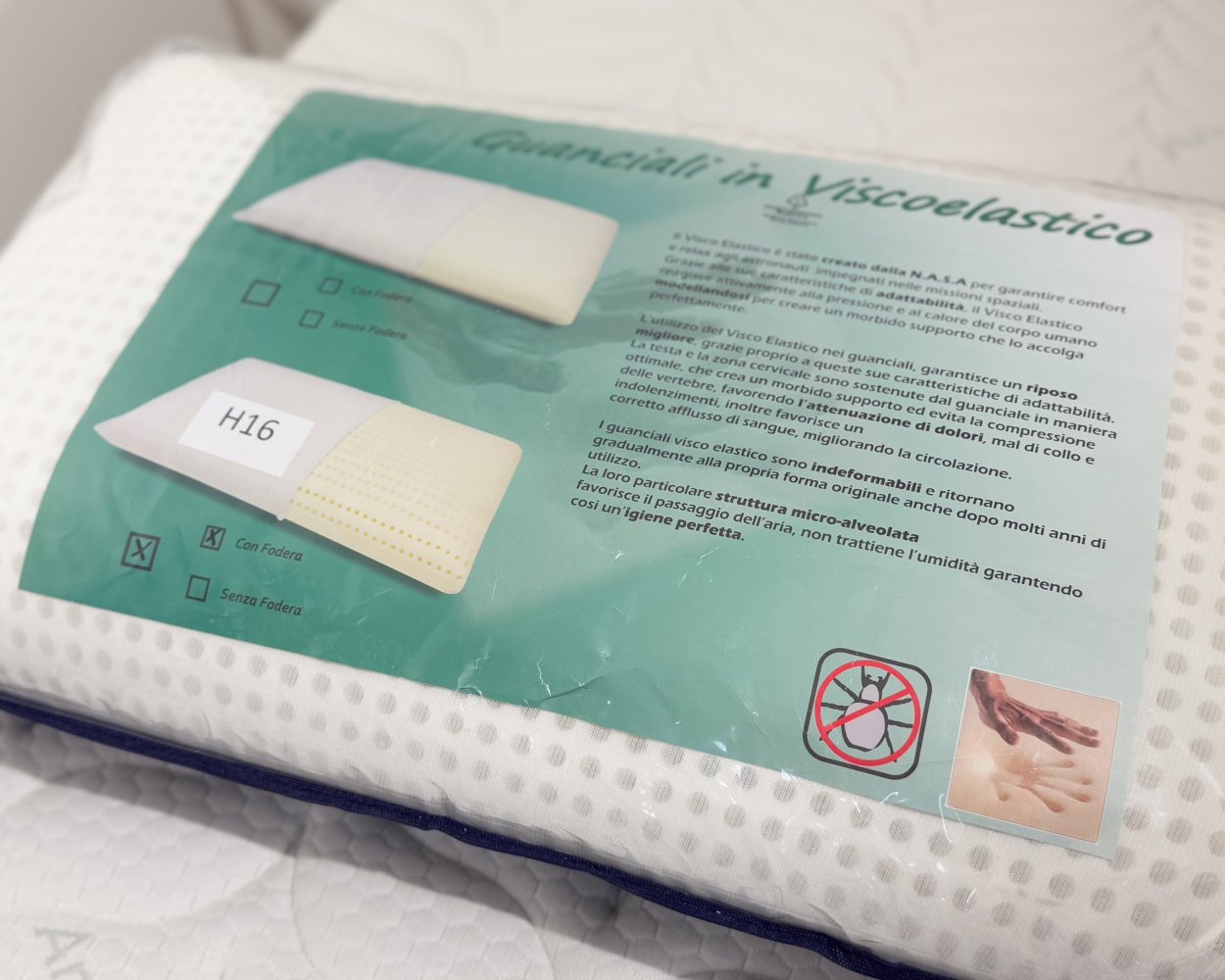 L'altezza di 16cm è indicata per chi dorme supino (di lato) e ha una necessità di cuscino alto.