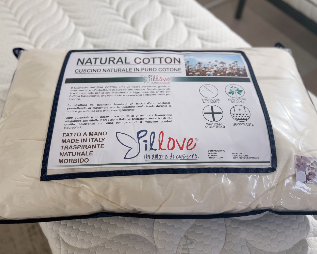 Ogni guanciale è un pezzo unico, frutto di un'accurata lavorazione artigianale che riflette la tradizione italiana. Utilizziamo materiali di alta qualità, selezionati con cura per garantire il massimo confort e durabilità.