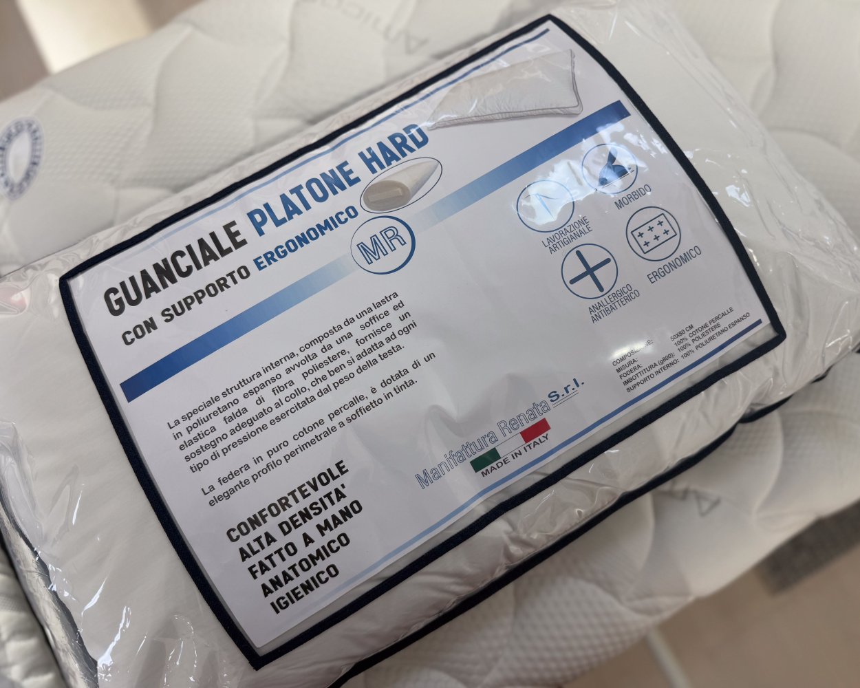 La speciale struttura interna, composta da una lastra in poliuretano espanso avvolta da una soffice ed elastica falda di fibra poliestere, fornisce un sostegno adeguato al collo, che ben si adatta ad ogni tipo di pressione esercitata dal peso della testa.
