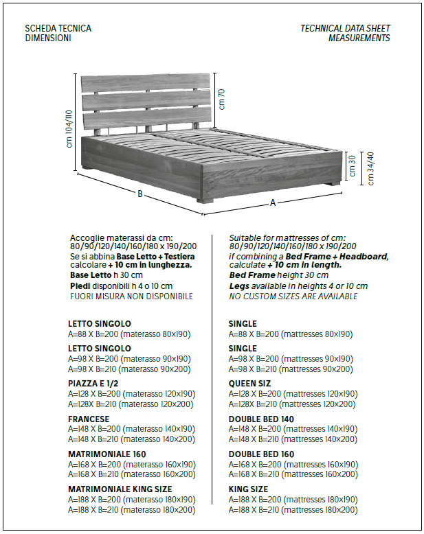 Se si abbina Base Letto + Testiera calcolare + 10 cm in lunghezza