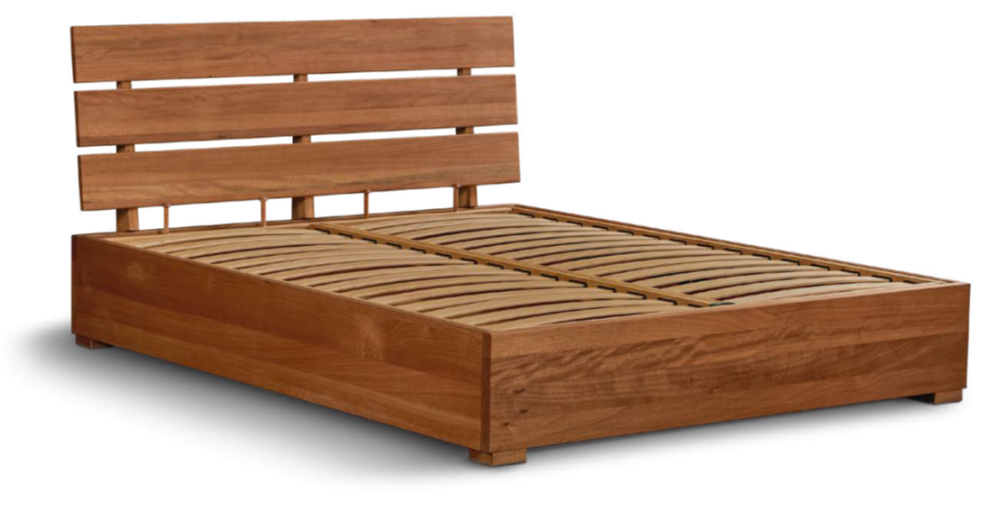 BASE CONTENITORE con rete in legno. Realizzata con telaio in faggio e doghe in multistrato di faggio curvato a vapore, elastiche ed ergonomiche. Meccanismo con pistoni a gas per agevolare l’apertura.