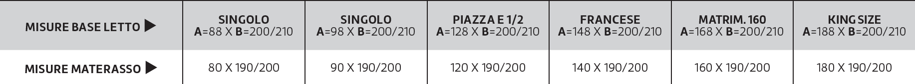 Il prezzo indicato si intende per la misura Matrimoniale 160, richiedi un preventivo per tutte le altre misure: