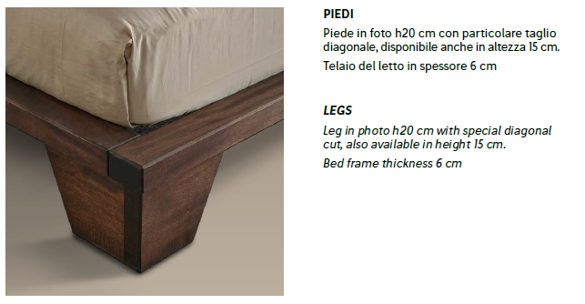 Piedi: fanno parte della struttura e del design esclusivo di questo modello. Disponibili in due altezze.