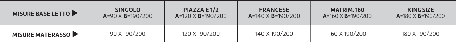 Il prezzo indicato si intende per la misura Matrimoniale 160, richiedi un preventivo per tutte le altre misure: