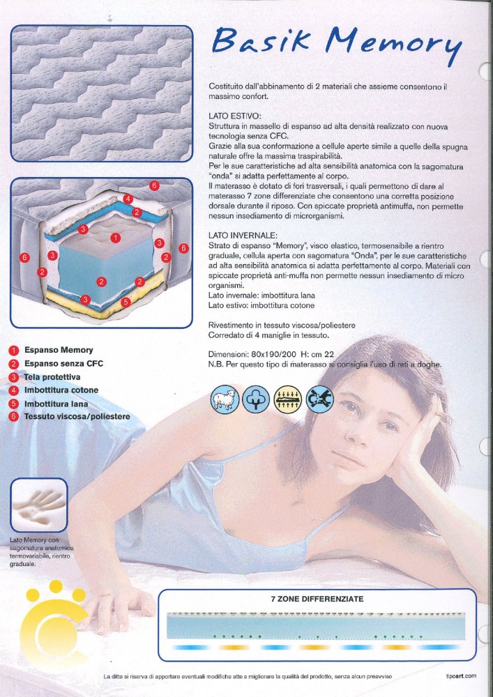 LATO INVERNALE: strato di espanso "Memory", visco elastico, termosensibile a rientro graduale, cellula aperta con sagomatura ad Onda, che si adatta perfettamente al corpo. Materiali con proprietà anti-muffa non permette nessun insediamento di micro organismi. Lastra ricoperta in tessuto protettivo elasticizzato. Imbottitura su entrambi i lati in fibra poliestere. Rivestimento in tessuto AMICOR PURE.