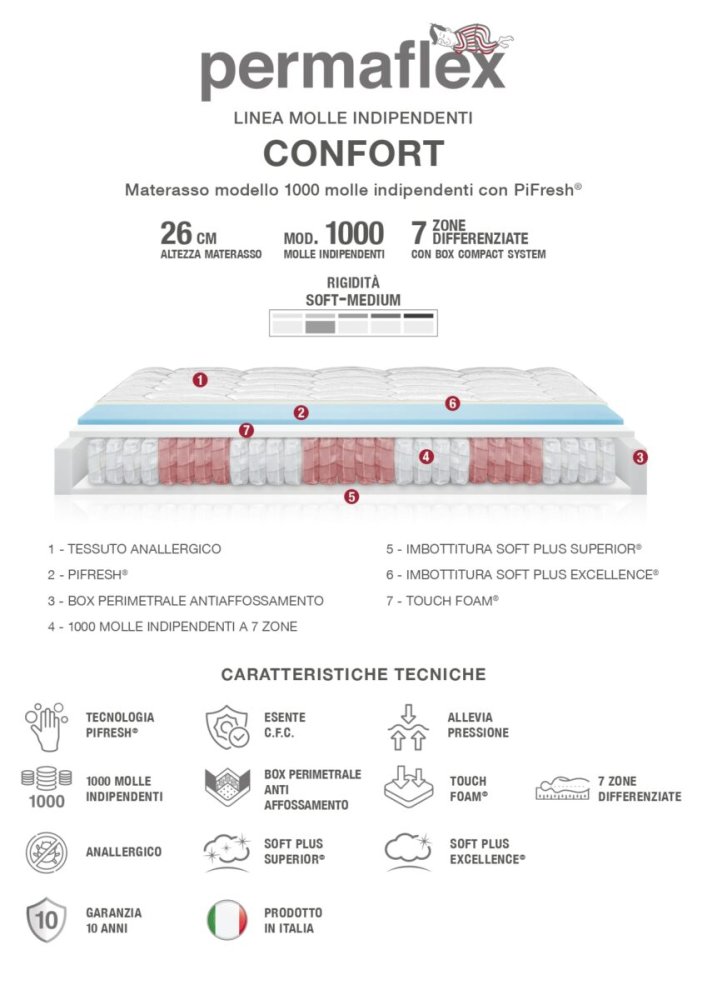 CONFORT Permaflex – materasso 1000 molle indipendenti con box media densità e tessuto anallergico