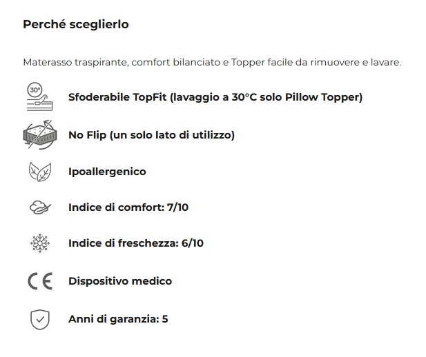 Il Pillow Topper sfoderabile aggiunge un ulteriore livello di comfort grazie a fibre traspiranti e Myform Air, migliorando la freschezza del materasso e semplificando la gestione dell’igiene quotidiana. È una proposta pensata per chi vuole un sistema letto essenziale, funzionale e piacevole da vivere ogni giorno, soprattutto in spazi giovani e dinamici.