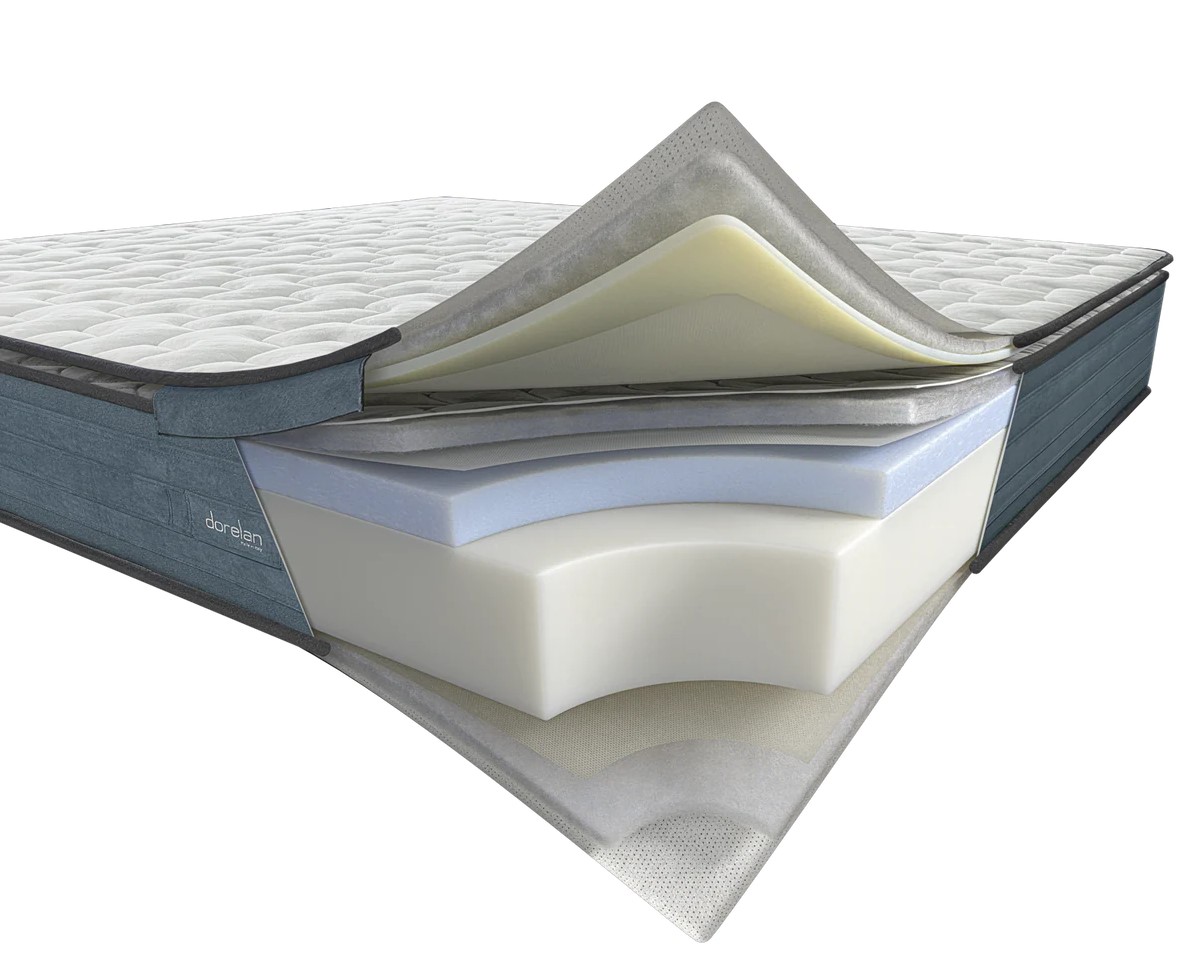 La struttura combina una base solida in Myform Extension con uno strato interno in Myform Memory Air, creando un sostegno elastico che accoglie il corpo in modo graduale e naturale.