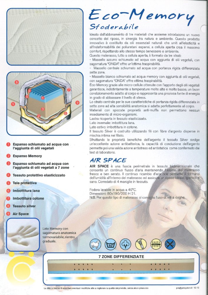 Eco-Memory grazie alle micro-cellule ottenute con l'apporto di olii vegetali garantisce, indistintamente a temperature molto alte e molto basse, un buon condizionamento adatto al corpo e rappresenta una preziosa fonte di energia in grado di abbassare il livello di stress.