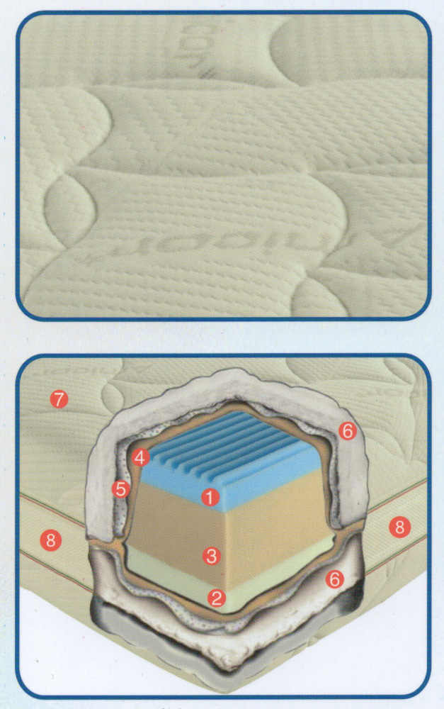 Lo strato centrale per le sue caratteristiche di portanza rigida differenziata in sette zone ad alta sensibilità anatomica si adatta perfettamente al corpo.