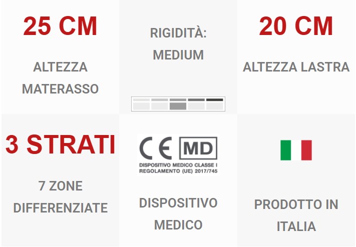- Sette zone a portanza differenziata: accolgono il corpo in modo mirato, riducendo i punti di pressione.
