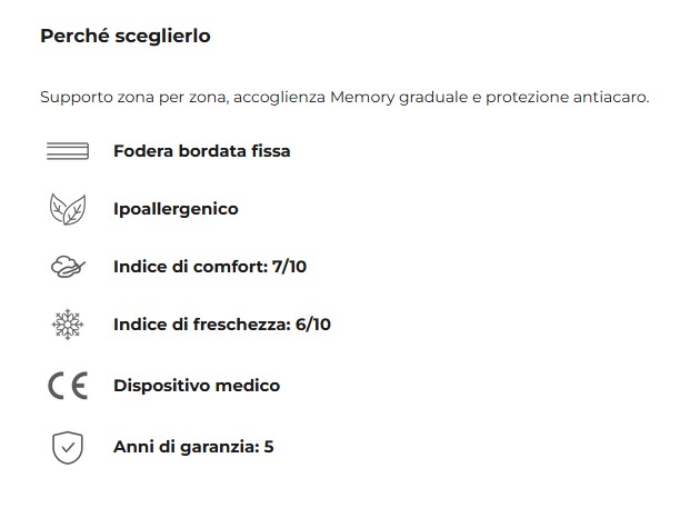 Lo strato in Myform Memory Air crea un’accoglienza graduale: distribuisce meglio il peso, riduce la pressione nei punti sensibili e favorisce un rilassamento più profondo grazie alla sua struttura traspirante. La fodera in tessuti altamente areabili è completata dal trattamento Fibersan, a base di oli essenziali naturali, che protegge da acari e allergeni mantenendo un microclima pulito e stabile.