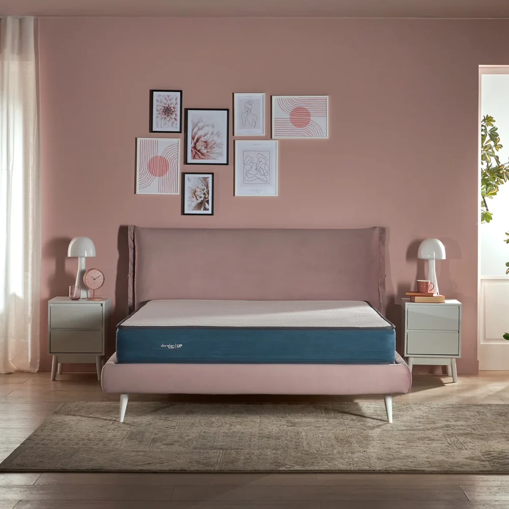 La fodera Up Myform porta il riposo a un livello superiore grazie all’imbottitura in Myform Memory Air, che reagisce alla pressione e si modella perfettamente sul corpo, migliorando la qualità del sonno. Il tessuto stretch in fibra di poliestere assicura elasticità e comfort ottimale. La trapuntatura Line aggiunge un tocco di ordine visivo e funzionalità. Il trattamento Fibersan, arricchito con oli essenziali naturali, protegge costantemente da acari e allergeni. Una soluzione pensata per chi cerca un comfort evoluto e bilanciato.