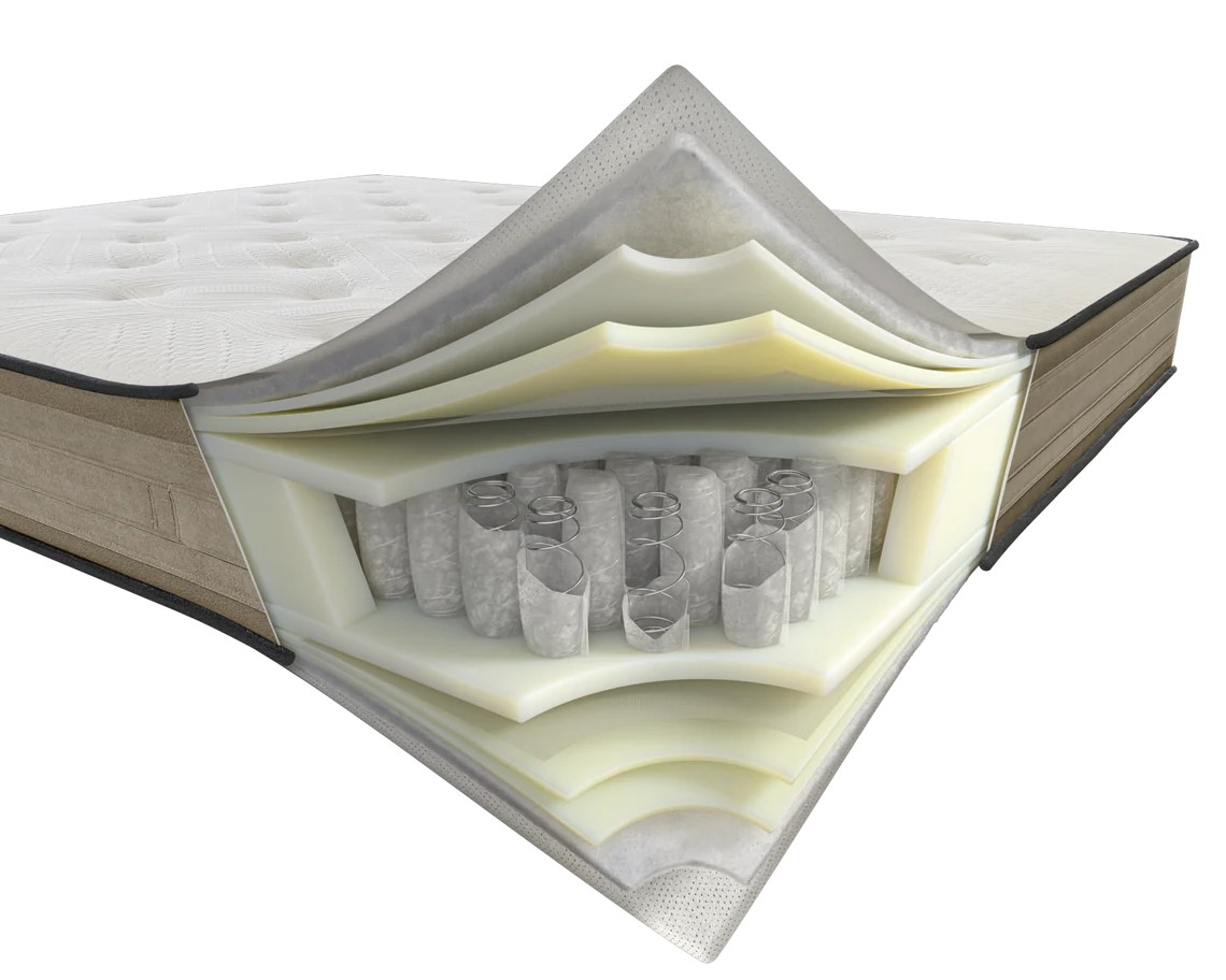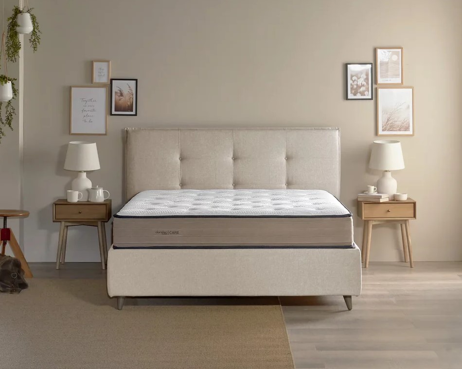 La tecnologia a molle indipendenti NextCoil distribuisce il sostegno in zone precise, seguendo il corpo senza rigidità. L’imbottitura naturale in Cotone, Ingeo e Myform Air offre un’accoglienza ariosa, capace di mantenere freschezza e stabilità per tutta la notte. Il rivestimento in microfibre di poliestere riciclato, arricchito da una trapuntatura effetto capitonné, aggiunge morbidezza e una presenza estetica calda e rassicurante.