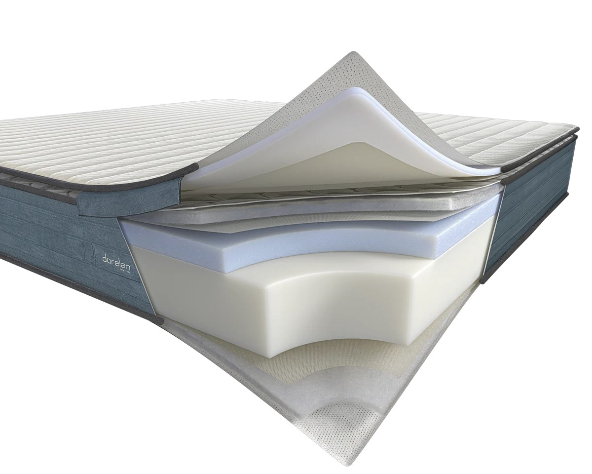 Mira unisce una base in Myform Extension a un doppio strato di Myform Memory Air, presente sia nel cuore della struttura sia nel Pillow Topper sfoderabile. Questa combinazione crea un comfort progressivo: la base mantiene un sostegno uniforme, mentre il Memory Air si modella con precisione sul corpo, allevia i punti di pressione e favorisce una ventilazione costante.