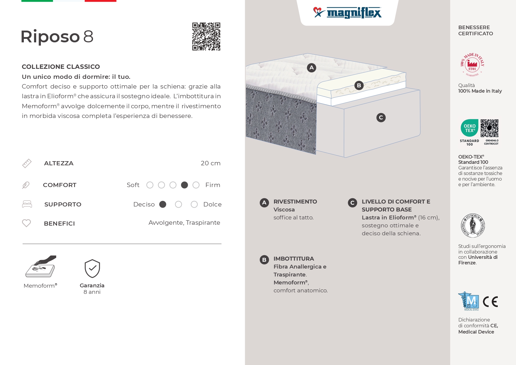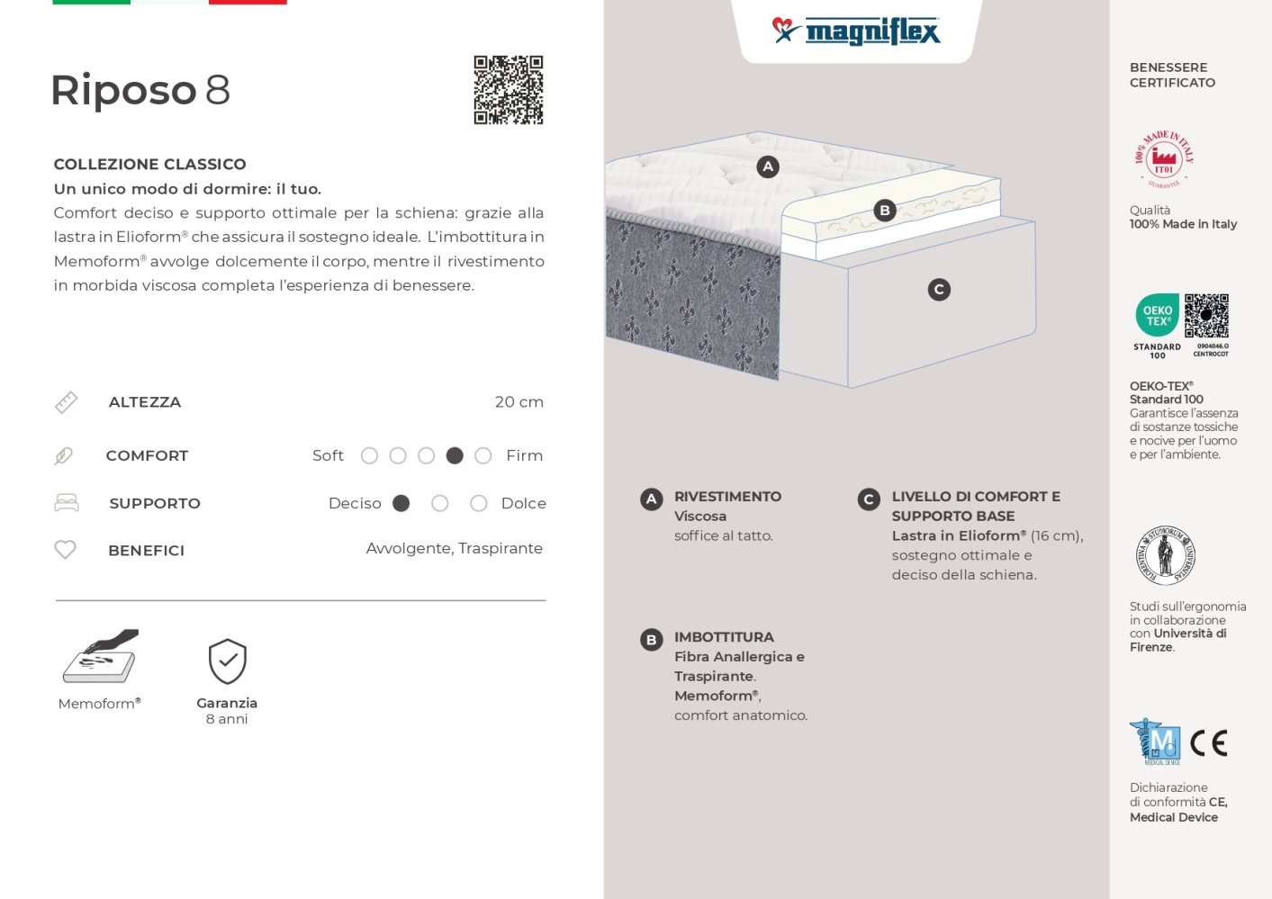 Memoform®, materiale anatomico si adatta perfettamente alla silhouette del corpo.