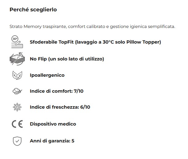 In sintesi, Venus è un materasso pratico, confortevole e progettato con cura: un equilibrio riuscito tra sostegno, freschezza e gestione semplice.