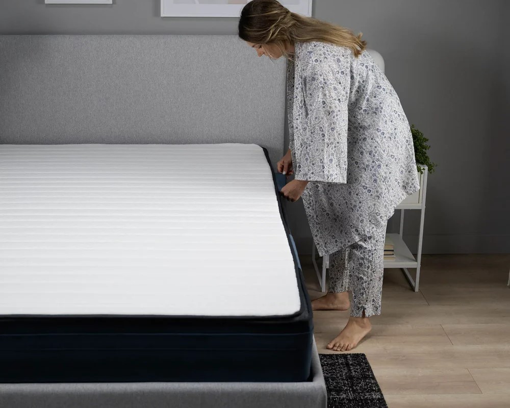 Tessuto resistente e traspirante in tonalità grigio sartoriale, progettato per completare con discrezione e stile la parte inferiore del materasso, garantendo coerenza estetica e solidità strutturale.
