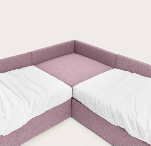Grazie alla sua configurazione angolare versatile, Space.A consente di trasformare due letti in un ampio divano o viceversa, permettendo di passare rapidamente da zona notte a zona giorno.