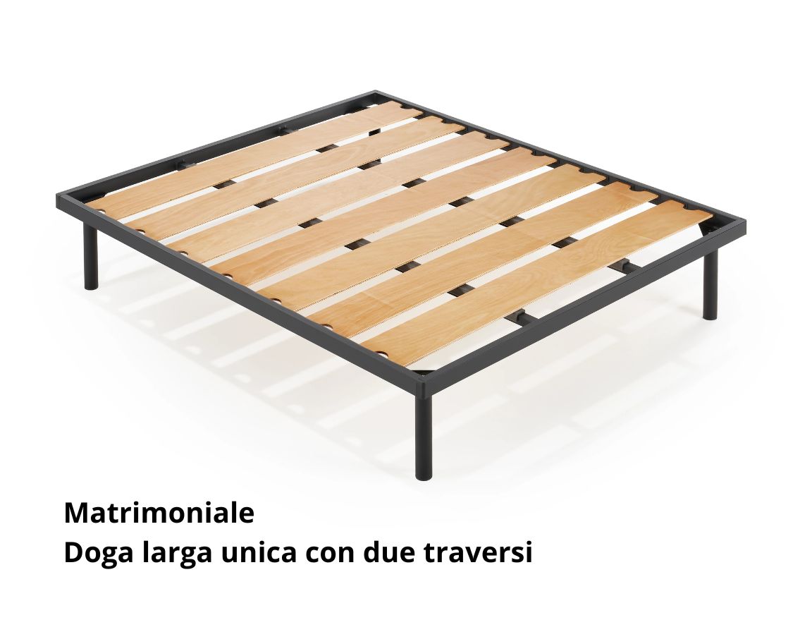 Nella versione singola le doghe sono curvate, così da offrire un sostegno più ergonomico e una maggiore capacità di assorbire il peso. Nelle misure da una piazza e mezza e matrimoniale le doghe sono piatte, studiate per lavorare in modo uniforme su superfici più ampie. La versione da una piazza e mezza è dotata di traverso centrale per una stabilità superiore.