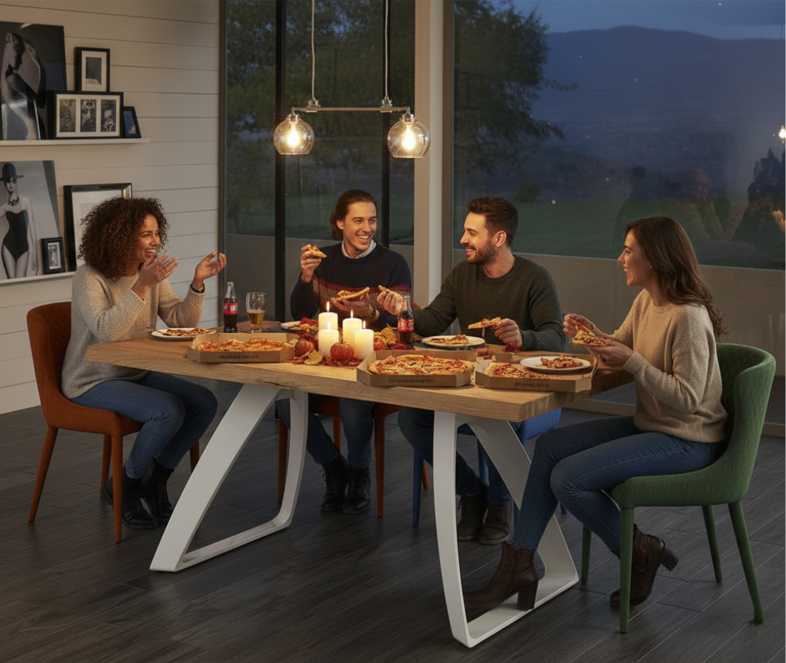 L'aspetto particolare, che ricorda quello di un'asse grezza, è sottolineato dal design dei bordi. Ogni tavolo è unico, grazie alla variazione delle venature e delle sfumature naturali del legno.