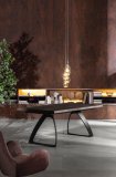 L'aspetto particolare, che ricorda quello di un'asse grezza, è sottolineato dal design dei bordi. Ogni tavolo è unico, grazie alla variazione delle venature e delle sfumature naturali del legno.