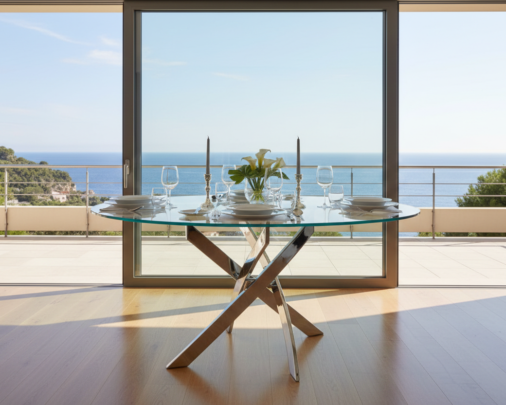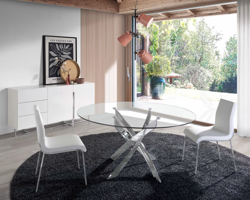 Tavolo fisso di Bontempi, con struttura in acciaio laccato in diversi colori.